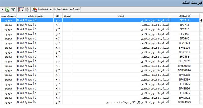 با زدن تکمه‌ی تصویب، فهرست تمام اسنادی که با رده‌ی مورد نظر آغاز می‌شود را ملاحظه خواهید کرد.