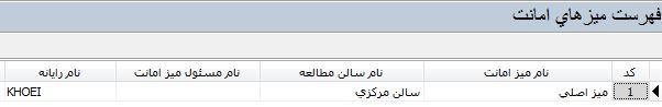 در پنجره "فهرست میزهای امانت"، با درج یک سطر جدید، اطلاعات را ثبت و ذخیره می نماییم.