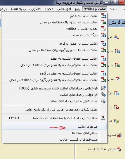 به همین منظور از منوی "امانت و مطالعه" گزینه "میزهای امانت" را انتخاب نماییم.