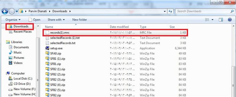 اکنون اطلاعات کتاب مورد نظر که در فایل records.mrc و در مسیر پیشفرض downloads <---mycomputer ذخیره شده است را بر روی Desktop کپی نمایید.