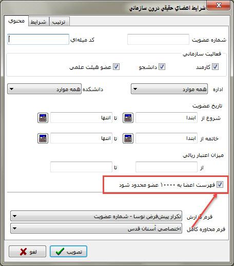 فهرست اعضا به 10000 عضو محدود شود را بردارید.با این کار مرتب سازی بر روی همهی اعضا اعمال میگردد.این گزینه در حالت پیشفرض دارای تیک میباشد.