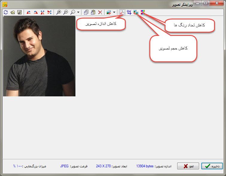 اگر احتیاج به تغییر اندازه ویا تغییرکیفیت عکس نیز داشته باشید می توانید با استفاده از امکانات طراحی شده تغییرات را اعمال نمایید