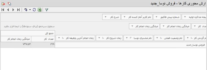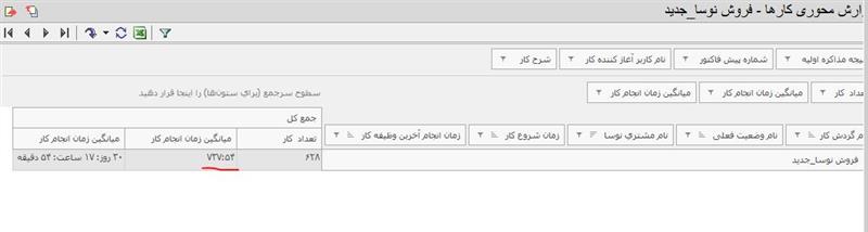 به این ترتیب با یک نگاه متوجه می شویم که مثلا، کارهای فرایند فروش نوسا، بطور میانگین حدود 30 روز طول کشیده است.