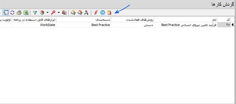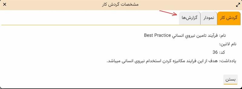- در محاوره "تعریف و اصلاح گردش کارها"، روی آیکون "گزارشهای مبتنی بر گردش کار" کلیک کنید (مطابق شکل زیر):