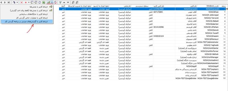 برای تنظیمات دسترسی کاربران به گزارشهای مبتنی بر گردش کار: