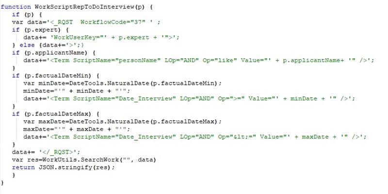 یک مثال نمونه ؛ تابع گزارش مصاحبه های در انتظار انجام (WorkScriptToDoIntereview)