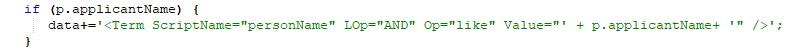 در این ناحیه، پارامتر نام متقاضی استخدام (applicantName) به عنوان یک Term جستجو به فایل xml افزوده می شود.