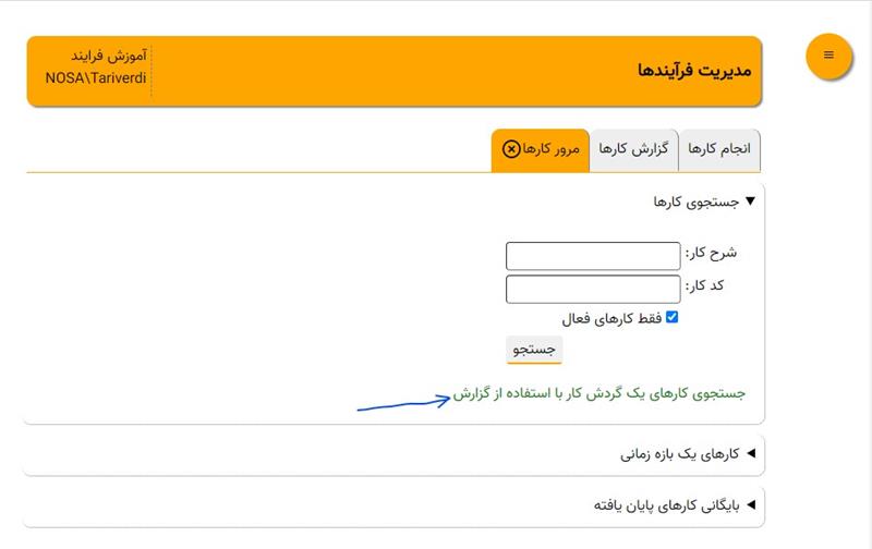 تهیه گزارش از طریق مرور کارها
