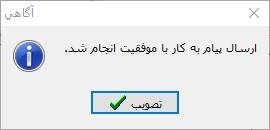 حال می توانید پیام مورد نظر خود را انتخاب و سپس، تکمه تصویب را کلیک کنید. در ادامه محاوره ای باز می شود که تایید مجدد کاربر را می خواهد و با تایید این محاوره، پیام ارسال می شود و در انتها پیغام زیر ظاهر می شود:
