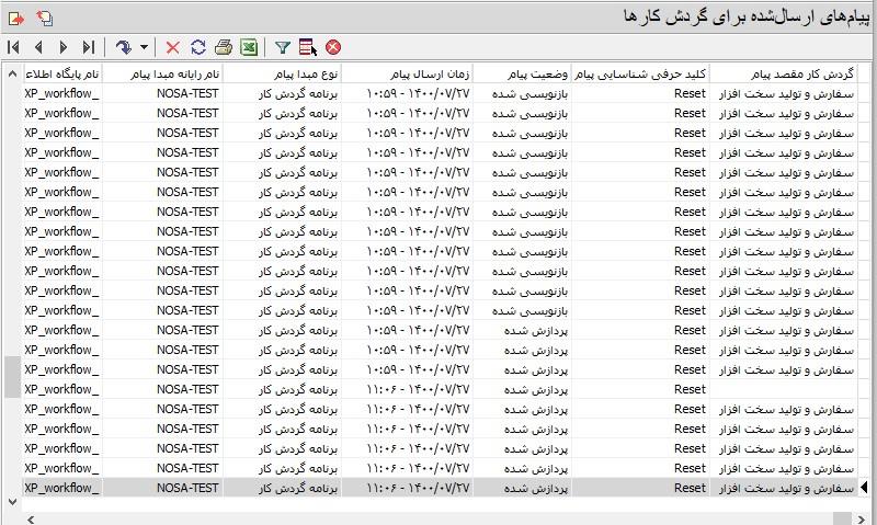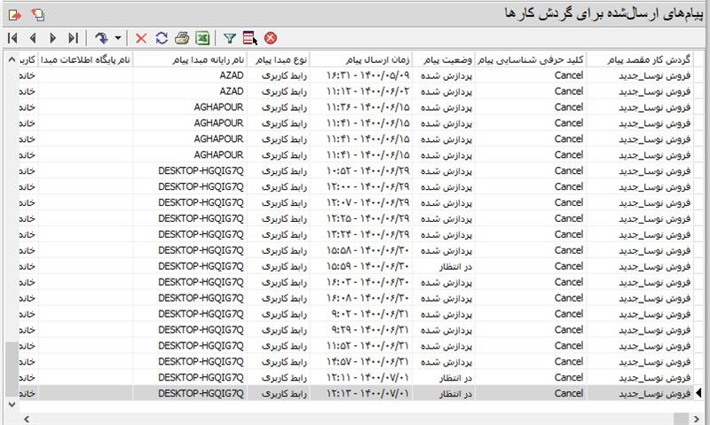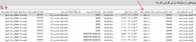 به این ترتیب فهرست پیامهای ارسال شده به کارها به شکل زیر نمایان می شود: