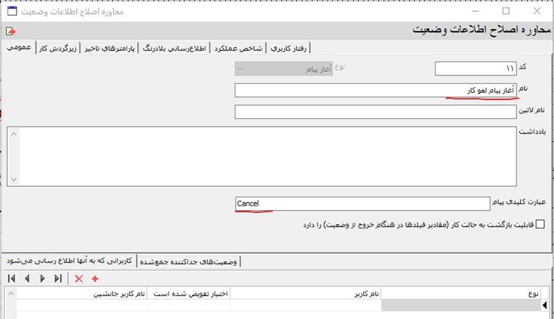 - حال روی این وضعیت دبل کلیک کنید تا محاوره اصلاح اطلاعات وضعیت به شکل زیر باز شود: