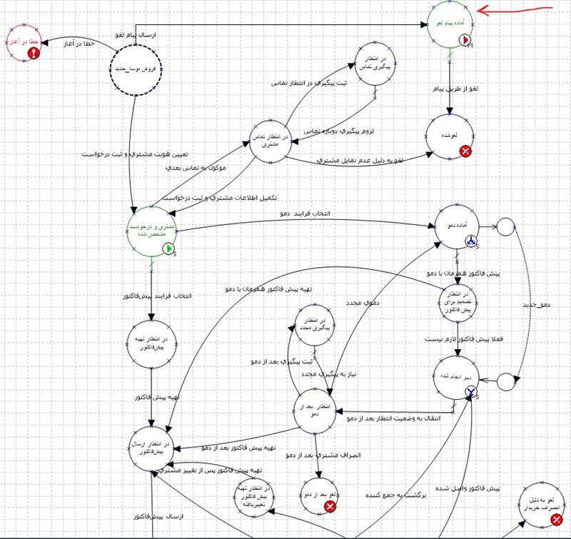- یک وظیفه از وضعیت آغاز پیام به وضعیت مورد نظر (در اینجا وضعیت لغو) رسم میکنیم.