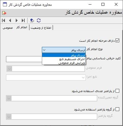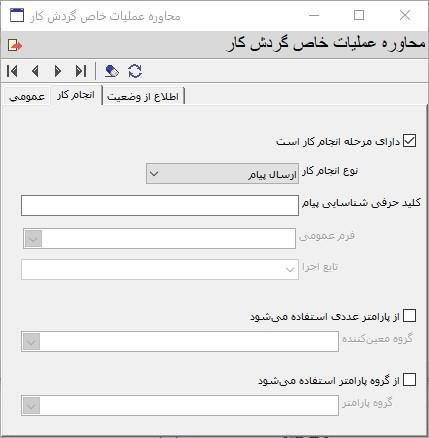 تنظیمات عملیات خاص از نوع ارسال پیام