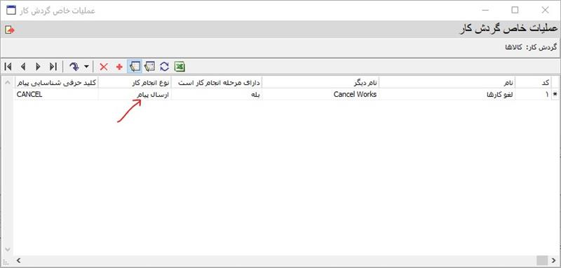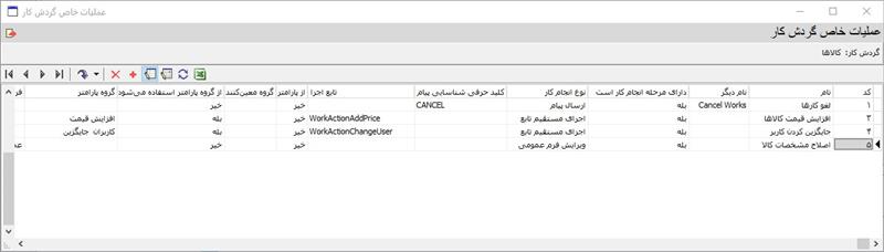 همانطور که مشاهده می کنید، در این مثال، گردش کار کالاها انتخاب شده و قرار است برای این گردش کار، عملیات خاص تعریف کنیم. حال: