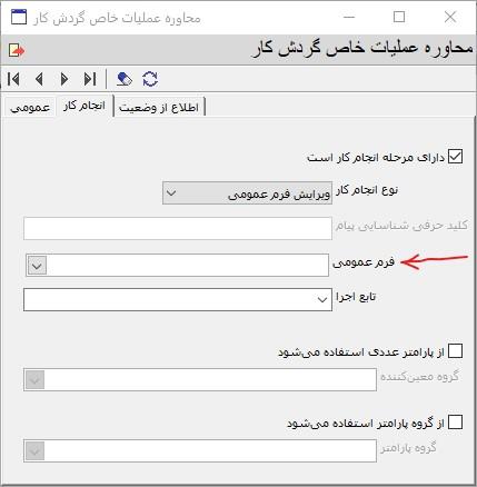 تنظیمات عملیات خاص از نوع ویرایش فرم عمومی