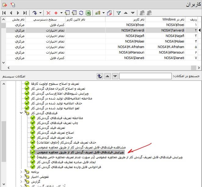 - دسترسی کاربران به عملیات خاص مورد به مورد قابل تعیین و تنظیم است.