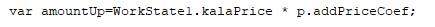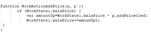 واضح است که در این مثال از پارامتر ضریب افزایش قیمت (addPriceCoef) استفاده شده و با ضرب کردن این ضریب در قیمت کالا، میزان افزایش قیمت در متغیر amountUp قرار داده شده است.