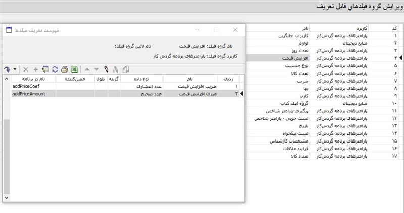 در این سطر یکی از پارامترهای زیرمجموعه گروه پارامتر افزایش قیمت برای درک بهتر این سطر، بهتر است ابتدا نگاهی به این گروه پارامتر بیندازیم: