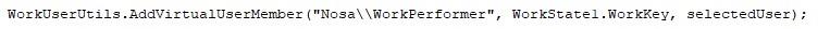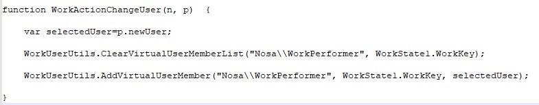 در این مرحله، کاربر جایگزین selectedUser که از طریق پارامتر تعیین شده است، به لیست کاربر مجازی WorkPerformer افروده می شود و به این ترتیب کارهای کاربر قبلی به کارتابل کاربر جایگزین منتقل می گردد.