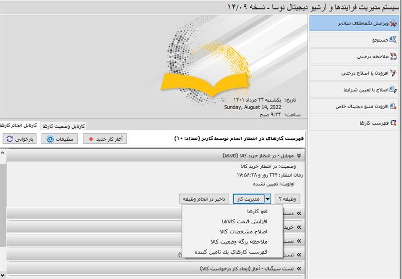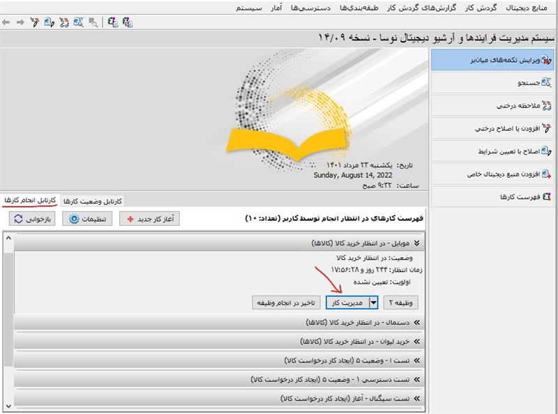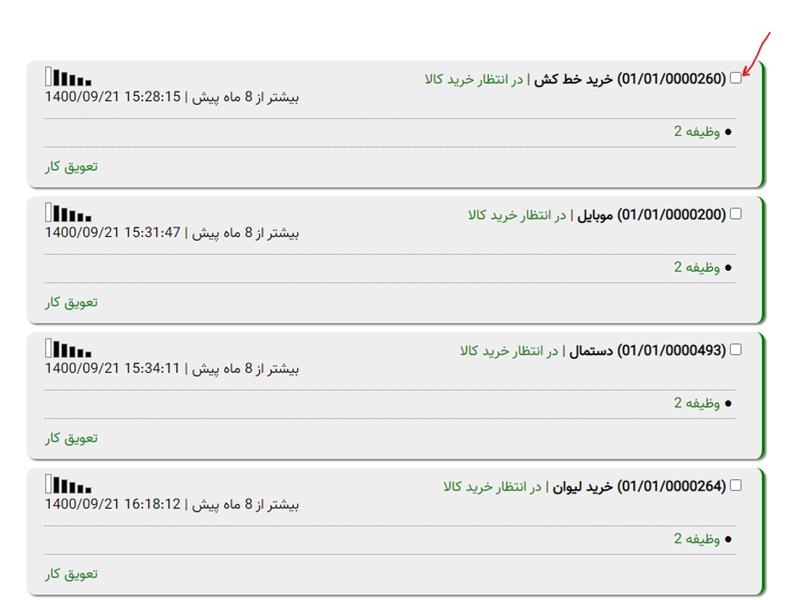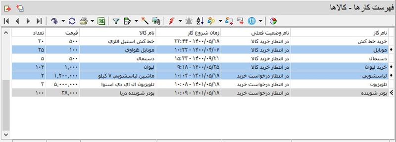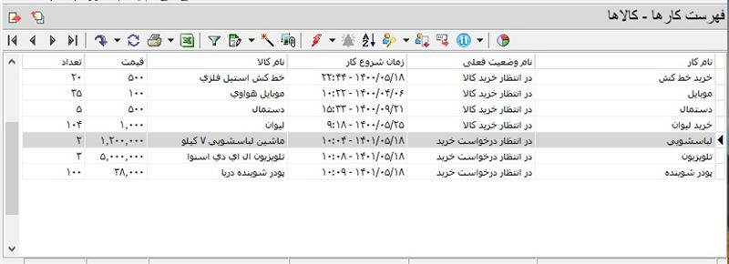- فهرست کارها به همراه فیلدهای قابل تعریف گردش کار
