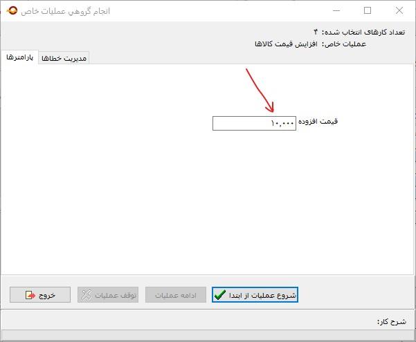 - مقدار مورد نظر خود برای پارامتر را تعیین کنید (در اینجا مبلغ 10000 ریال برای افزایش قیمت در نظر گرفته است)،