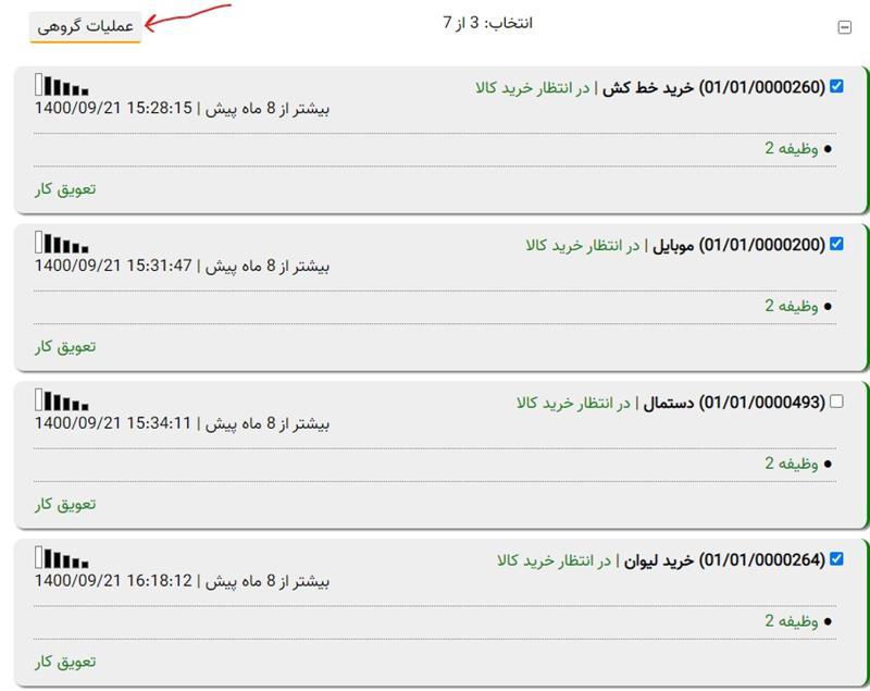 نکته مهم: اگر می خواهید عملیات خاص را به شکل گروهی و برای بیش از یک کار انجام دهید باید از فهرست کارها به همراه فیلدهای قابل تعریف استفاده کنید.