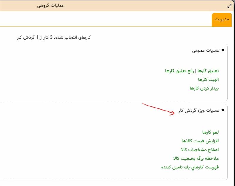 عملیات خاص در کلاینت ویندوز از دو طریق فهرست کارها و کارتابل انجام می شود و در کلاینت تحت وب از طریق عملیات گروهی انجام می شود که در ادامه با جزئیات کامل شرح داده شده است: