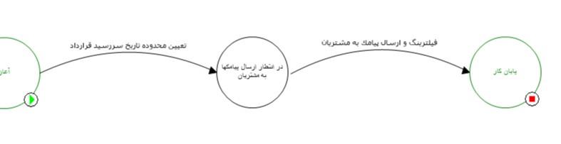 این گردش کار برای ارسال پیامک یادآوری به مشتریانی است که تاریخ قرارداد خدمات برای آنها سررسید شده است. بنابراین در یک مرحله از این گردش کار: