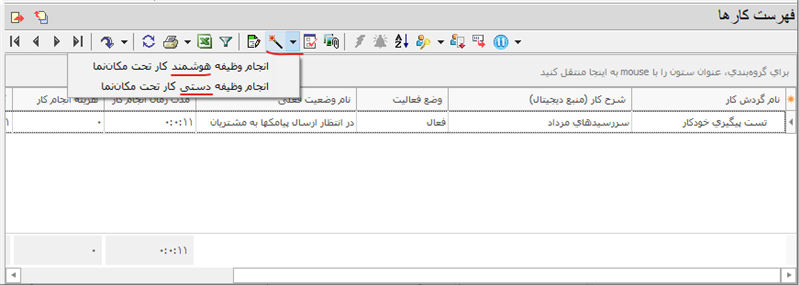 توضیح: در کارتابل انجام کارها این مشکل وجود ندارد و کاربر می تواند فهرست وظایف را باز کرده و وظیفه مورد نظر خود را اجرا کند:
