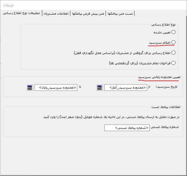 *: این فیلد از نوع گزینه ای تعریف شده و مقدار 1 برای این فیلد برابر با گزینه دوم یعنی اعلام سررسید است.