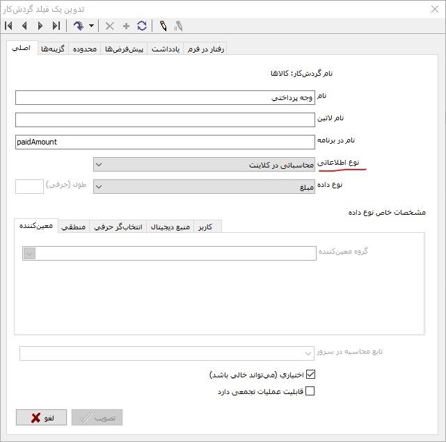 ضمیمه: فیلدهای "محاسباتی در سرور" در برنامه کلاینت برای تعیین رفتار در فرم