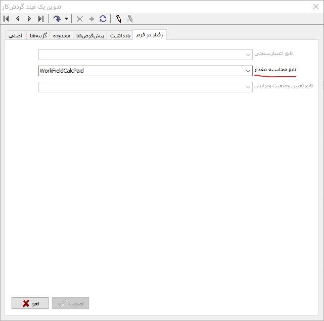 حال باید در برگه رفتار در فرم، تابع محاسبه مقدار را برای این فیلد تعیین کنید.