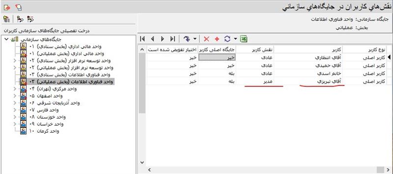 در شکل بالا مدیر جایگاه سازمانی واحد اصفهان را ملاحظه می کنید. بنابراین در این مثال، خانم دبیری مدیر اصلی خانم میرزاپور خواهد بود.