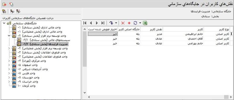 - کاربران جایگاههای سازمانی بخش خاص