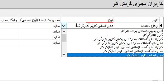 - کاربران جایگاههای سازمانی بخش* کاربر آغازگر کار