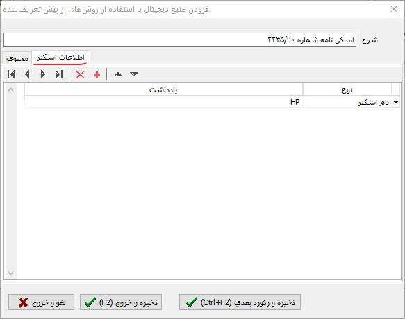 عنوان صفحه یادداشتها: در اینجا می توانید عنوان صفحه یادداشتها را به دلخواه خود تغییر دهید. در مثال فوق می توانیم همانند شکل زیر، عبارت اطلاعات اسکنر را برای عنوان صفحه استفاده کنیم:
