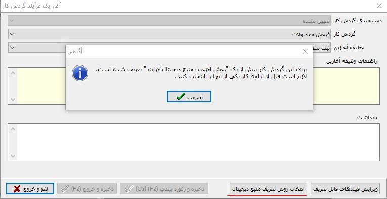 - بیش از یک روش آغاز کار در فهرست وجود دارد: در این حالت هم تکمه انتخاب روش تعریف منابع دیجیتال در محاوره ظاهر می شود و کاربر باید روش مورد نظر خود را از این طریق انتخاب نماید.