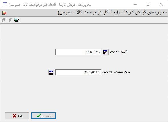 در فرمهای انجام وظیفه می توانیم به دو فرم هجری شمسی و میلادی تاریخها را وارد کنیم. برای این کار می توانیم هم به شکل دستی تاریخ مورد نظر خود را تایپ کنیم و هم می توانیم از ابزار تقویم (Date Picker)، تاریخ مورد نظر خود را انتخاب کنیم. برای مثال به فرم زیر توجه کنید: