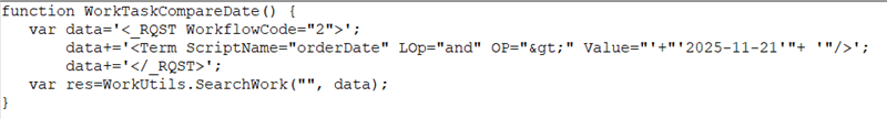 مثال: فرض کنید در یک گردش کار تامین نیروی انسانی می خواهیم تاریخ شروع به کار کارمند را با تاریخ درخواست استخدام او مقایسه کنیم و اگر کوچکتر از آن بود پیغام خطا نمایش دهیم. در این حالت کافی است همانند تابع اجرای زیر، محتوای دو فیلد را بصورت ساده با هم مقایسه کنید:
