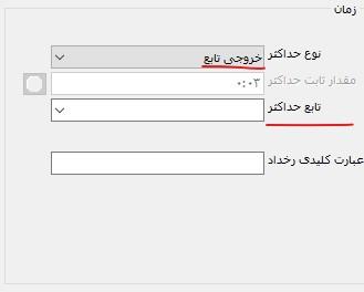 اگر در ناحیه زمان، فیلد "نوع حداکثر" را تغییر داده و گزینه "خروجی یک تابع" را انتخاب کنیم آنگاه این ناحیه به شکل زیر تغییر می کند: