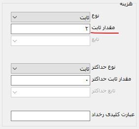 نوع ثابت: در این حالت یک مقدار ثابت برای هزینه را در نظر می گیریم. برای مثال در گردش کار تعمیر و نگهداری برای هر بازدید از تجهیزات یک واحد هزینه در نظر می گیریم. با توجه به این مثال دقت کنید که واحد هزینه لزوما واحد پولی ( مثلا ریال) نیست و واحد هزینه با توجه به ماهیت وظیفه تعیین می شود. برای نمونه در این مثال (شکل زیر) مقدار 2 واحد هزینه برای هر بازدید محاسبه می شود: