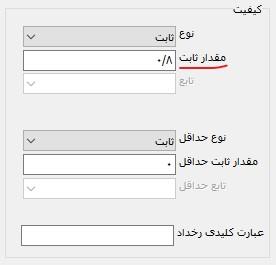 نوع ثابت: در این روش یک مقدار عددی ثابت برای کیفیت تعیین می کنیم. در مثال زیر برای کیفیت وظیفه، مقدار 0.8 تعیین شده است: