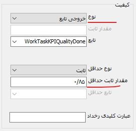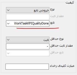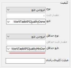 توضیح: در مورد تعیین کیفیت وظیفه نیز باید توجه کنید که ممکن است مقدار ثابت کیفیت توسط کاربر (یا بطور خودکار توسط سیستم) و در حین کار، در یک فیلد قابل تعریف وارد و ثبت شود. در این صورت، خروجی تابع، مقدار فیلد یادشده خواهد بود.
