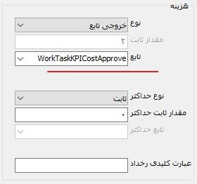همانطور که ملاحظه می کنید، عنوان تابع حداکثر هزینه، دارای پیشوند WorkTaskKPICostMax است. در این مثال، برای هر دسته از تجهیزات، یک هزینه حداکثر خاص آن دسته تعیین شده است.