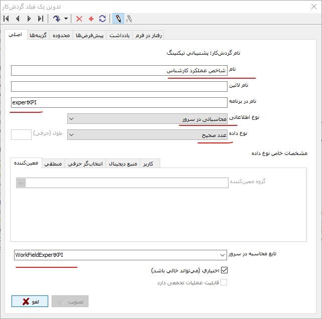 نام فیلد محاسباتی: شاخص عملکرد کارشناس (expertKPI)