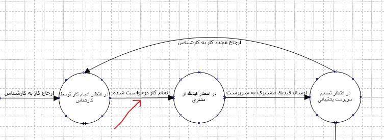 قبل از اینکه نوشتن تابع را شروع کنید باید توجه کنید همانطور که در دیاگرام زیر نمایش داده شده است، امکان دارد پس از انجام کار توسط کارشناس، به دلیل عدم رضایت مشتری یا عدم تایید سرپرست پشتیبانی، این کار مجدد به کارشناس ارجاع شود و تا جلب رضایت مشتری و تایید سرپرست، چند بار در یک حلقه تکرار شود: