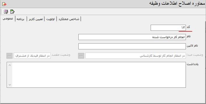 توضیح این که این محاوره را می توانید هم از طریق دبل کلیک روی وظیفه مورد نظر در دیاگرام گردش کار و هم از ابزار "فهرست وظایف" در محاوره "تعریف و اصلاح گردش کارها" روی صفحه باز کنید.