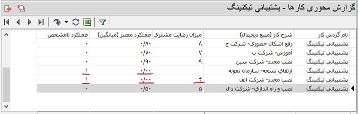 سوال برای تفکر بیشتر: همانطور که در گزارش می بینید، ستونی بنام مدت رفع اشکال کارشناس وجود دارد. به نظر شما اطلاعات این ستون از کجا می آید؟ آیا می توانیم از فیلد محاسباتی که برای شاخص عملکرد کارشناس تعریف کرده ایم در این ستون هم استفاده کنیم؟