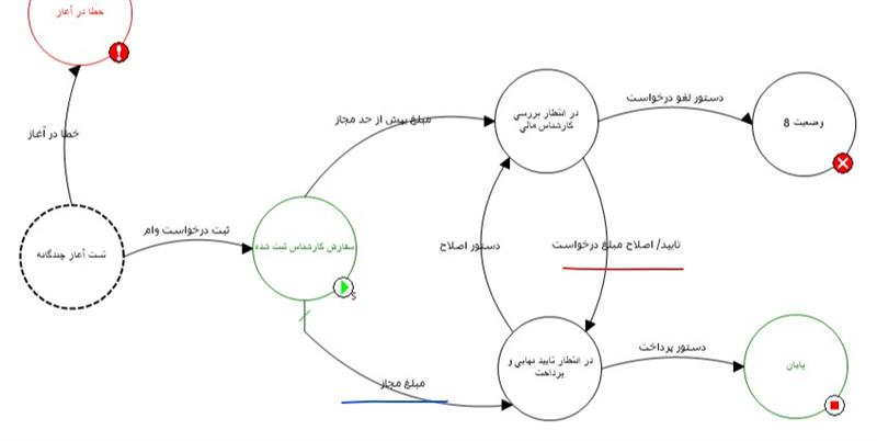 در شکل زیر دیاگرام یک گردش کار درخواست وام را ملاحظه می کنید: