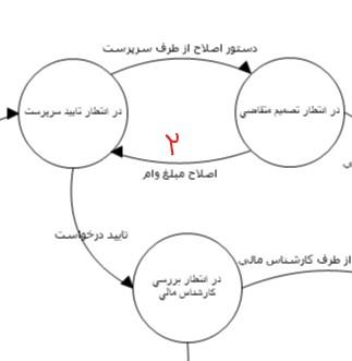 3) سرپرست در صورت لزوم، دستور به اصلاح مبلغ وام می دهد و در پی آن، متقاضی در تراکنش دیگری که با شماره 2 مشخص شده است، مبلغ را اصلاح می کند. در انتها سرپرست درخواست را تایید و به کارتابل کارشناس مالی منتقل می کند.